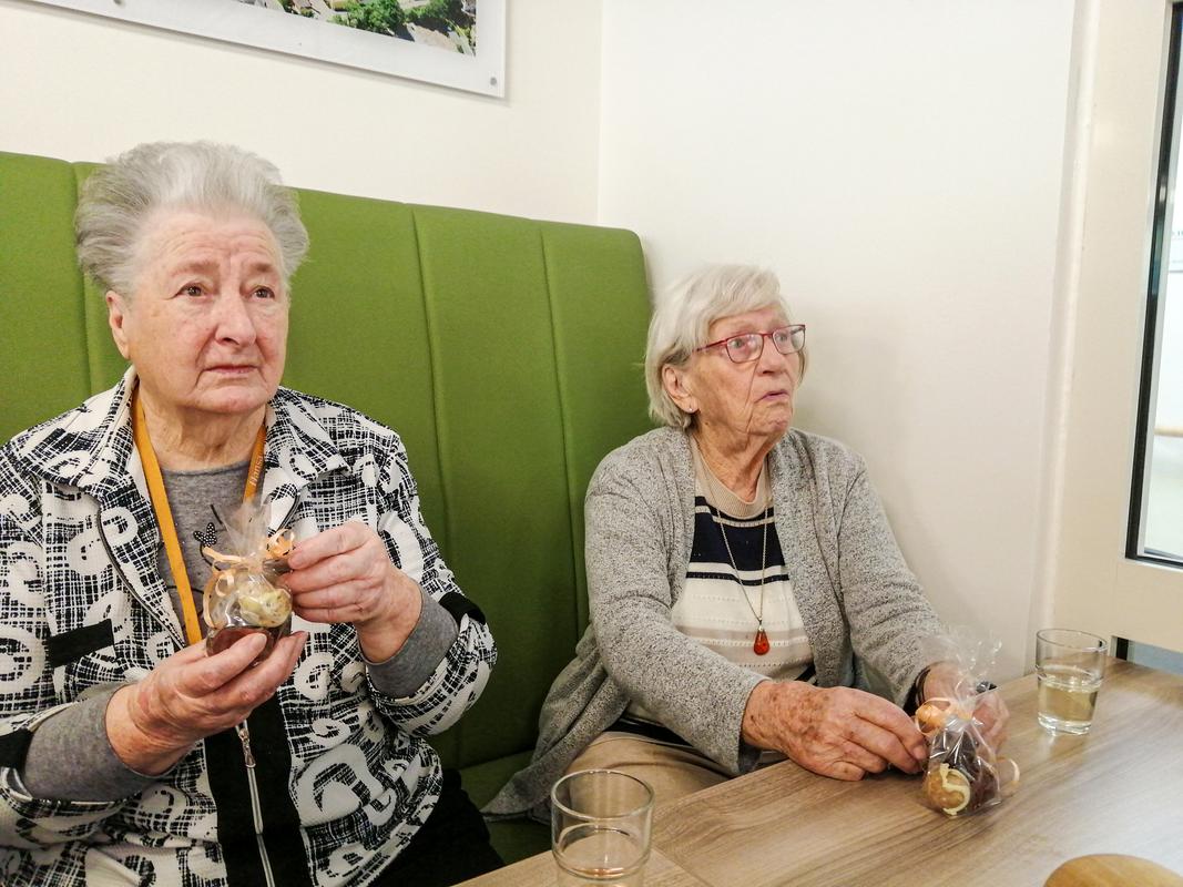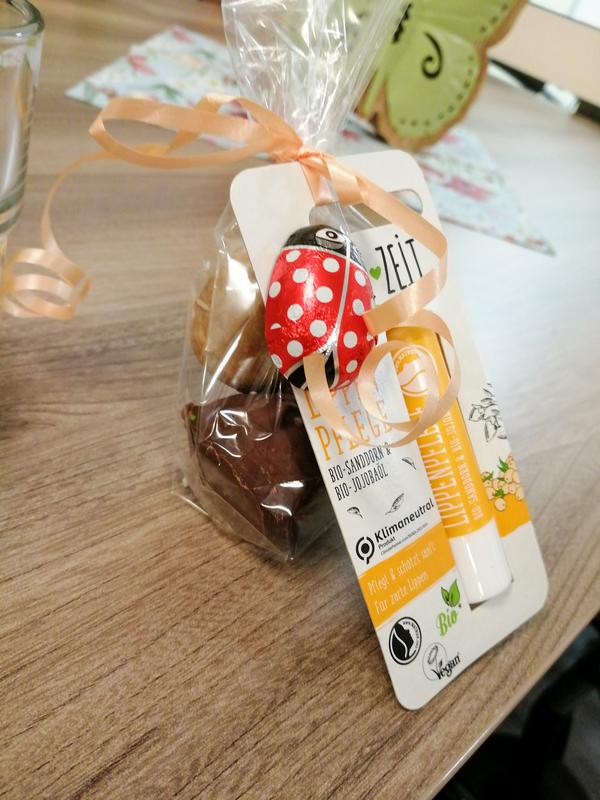 Blumen schenken, dachten wir uns, kann ja jeder. Somit gab es für unsere Bewohnerinnen ein kleines Präsent aus selbst hergestellten Pralinen und einem Lippenpflegestift.
